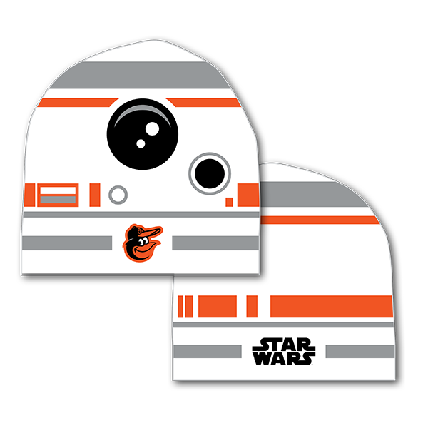 The Orioles capitalize on their team colors shared with BB-8 with this beanie and Trey Mancini bobblehead.